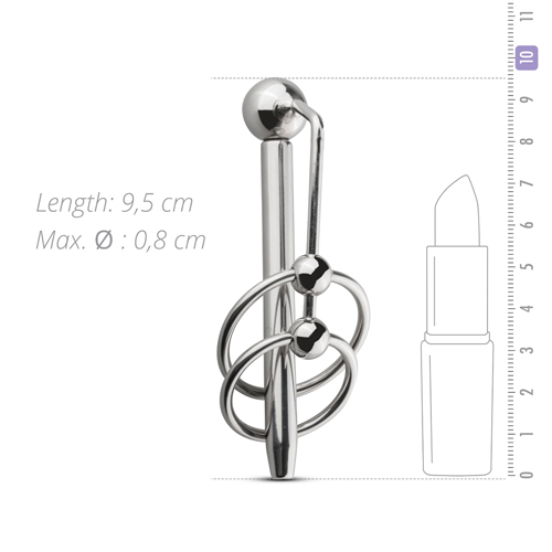 Dieser Metalldilatator mit Penisringen ist aus starkem und glattem Metall gefertigt. Dadurch sieht das Toy ziemlich verrückt aus. Es kann mit jedem Gleitmittel verwendet werden. Der Dilatator ist mit einem abnehmbaren Oberteil versehen. Schrauben Sie das Oberteil ab und genießen den hohlen Penisplug. Weil das Spielzeug aus Metall ist, können Sie es vor Gebrauch auch aufwärmen oder abkühlen. Sie können das Toy für ein paar Minuten in warmes Wasser oder in Kühlschrank legen.