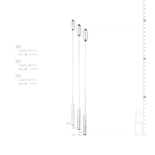 Dieses Set Besteht aus 3 Dilatatoren mit unterschiedlichen Durchmessern: 1,1 cm, 1,2 cm und 1,3 cm. Die Dilatatoren sind vollständig aus rostfreiem Stahl gefertigt, ein starkes und langlebiges Material. Damit ist es möglich, dass Sie Ihr Lieblingsgleitmittel in Kombination mit den Dilatatoren verwenden und Sie können das Metall mit Wasser aufwärmen oder abkühlen. Die Dilatoren haben eine runde Spitze, dadurch können Sie sie mühelos einführen. Sie haben auch einen praktischen Griff, um ihn währen des Gebrauchs gut festzuhalten.