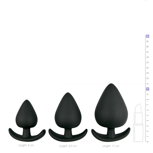 Fest und doch flexibel ist dieser Plugsatz ideal für alle, die Analsexspielzeuge mögen. Durch das glatte und weiche Silikon wird das Tragen der Plugs zu einem lustvollen Vergnügen. Sie haben ein elegantes Design mit einem bauchigen Körper und einem spitzen Ende für eine leichte Einführung. Experimentieren Sie einfach mit den drei unterschiedlichen Größen und Sie werden im Handumdrehen ein Experte in Sachen Analspiele!