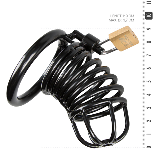 Dieser schwarze Peniskäfig beschützt Ihre Männlichkeit wie kein anderes Sexspielzeug. Der Käfig ist aus starkem und strapazierfähigem Metall gefertigt und übersteht so selbst die härtesten BDSM-Spiele. Der Schaft hat Öffnungen, sodass Ihr Penis dennoch sichtbar ist. Während man den Käfig trägt ist es dennoch möglich zur Toilette zu gehen, was längere Tragezeiten ermöglicht. Sie können den Käfig verschließen, indem Sie den Metall-Ring über Ihren Penis und Ihre Hoden legen und sicher verschließen. Es ist unmöglich den Käfig abzunehmen, wenn er geschlossen ist.